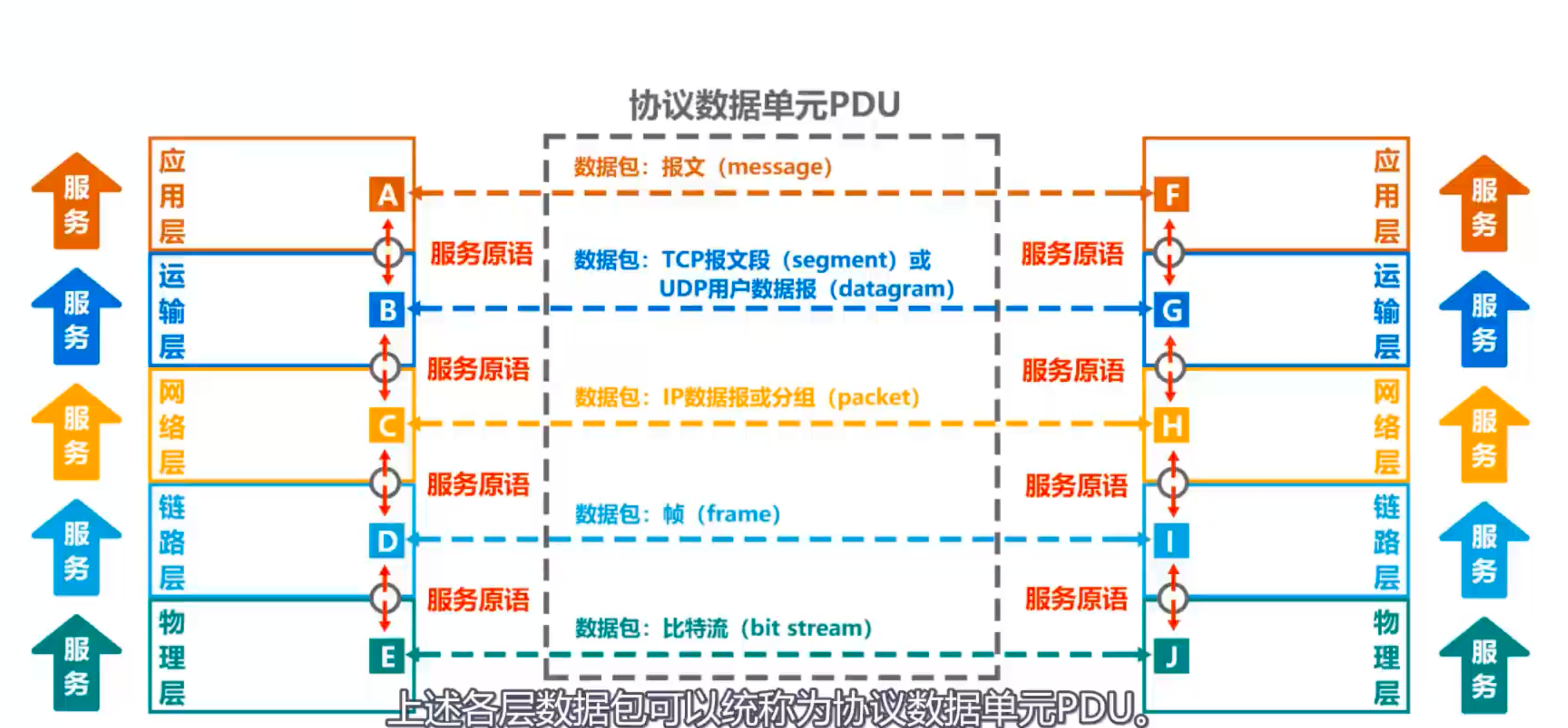 - TCP向其上提供面向连接的可靠传输服务,UDP向其上提供无连接、不可靠传输服务,IP向其上层提供无连接、不可靠传输服务,802.11无线局域网要求数据链路层实现可靠传输,以太网不要求数据链路层实现可靠传输。